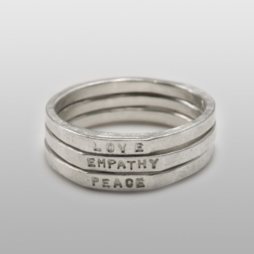 Stylish and simple message stacking ring set by designer Aoyama Masataka of Kalico Lucy.